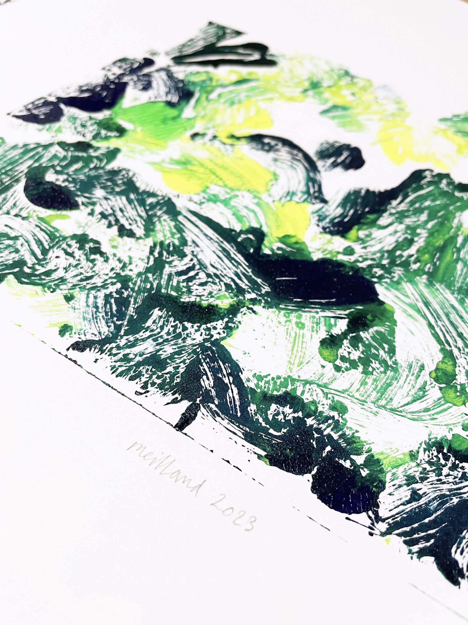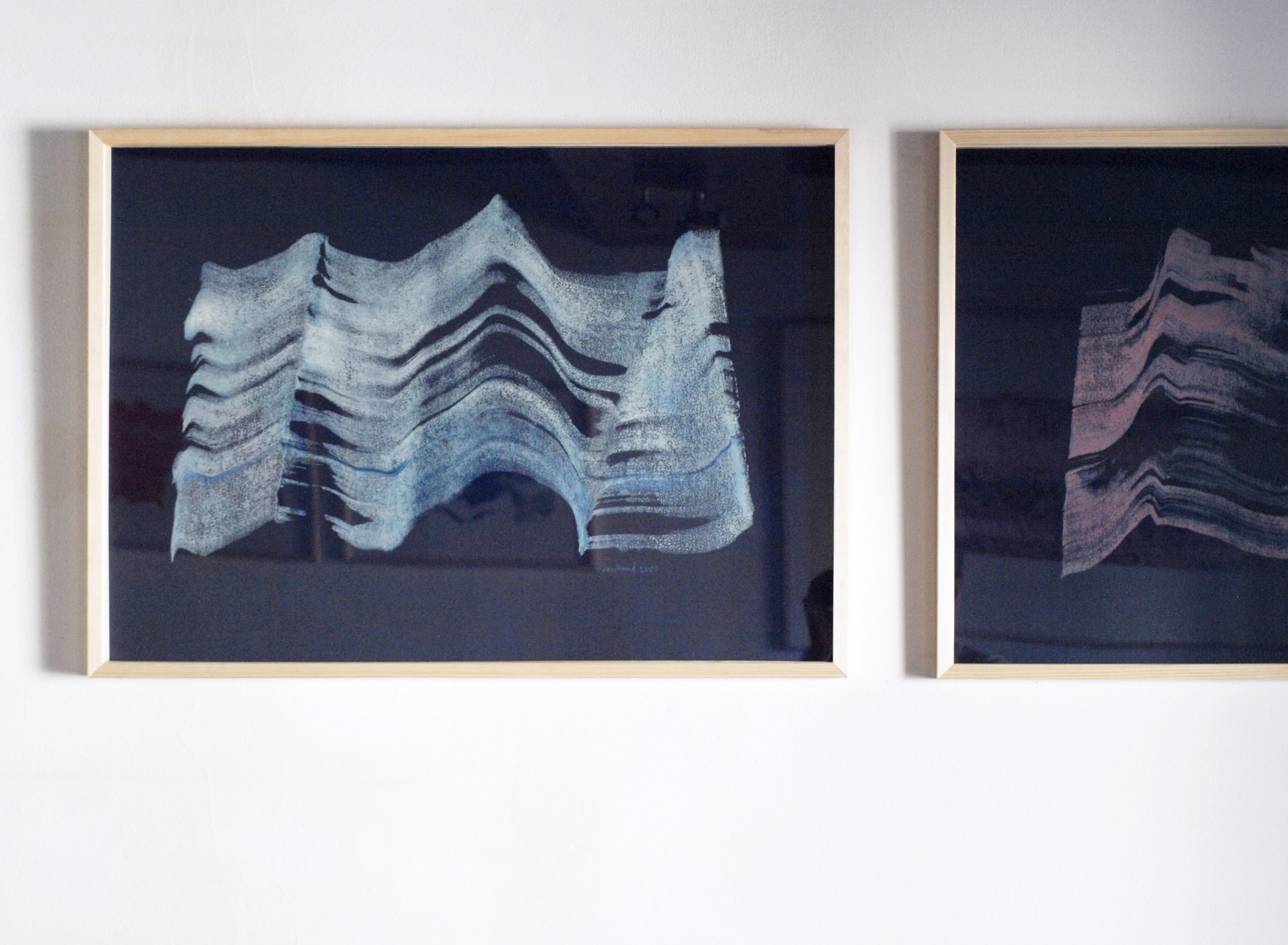 Pour cette série, je propose les œuvres avec passe-partout (carton d’encadrement contrecollé couleur blanc naturel, sans acide, et d’épaisseur 1,5mm), essentiel pour éloigner la peinture et les pigments de la vitre en verre. Les cadres (du 24x30cm au 70x100cm) sont de la gamme Nielsen Alpha, en aluminium anodisé, noirs brillants.